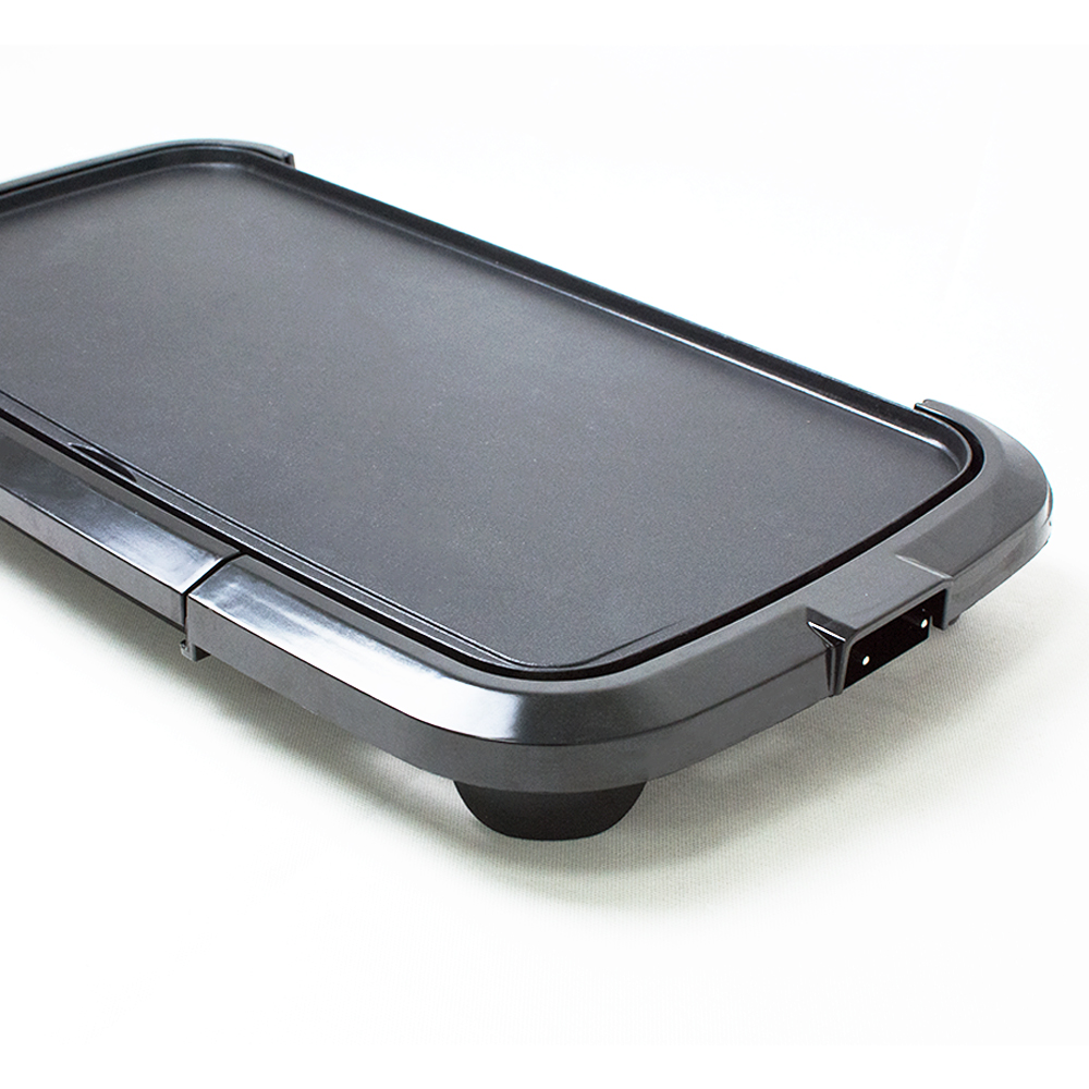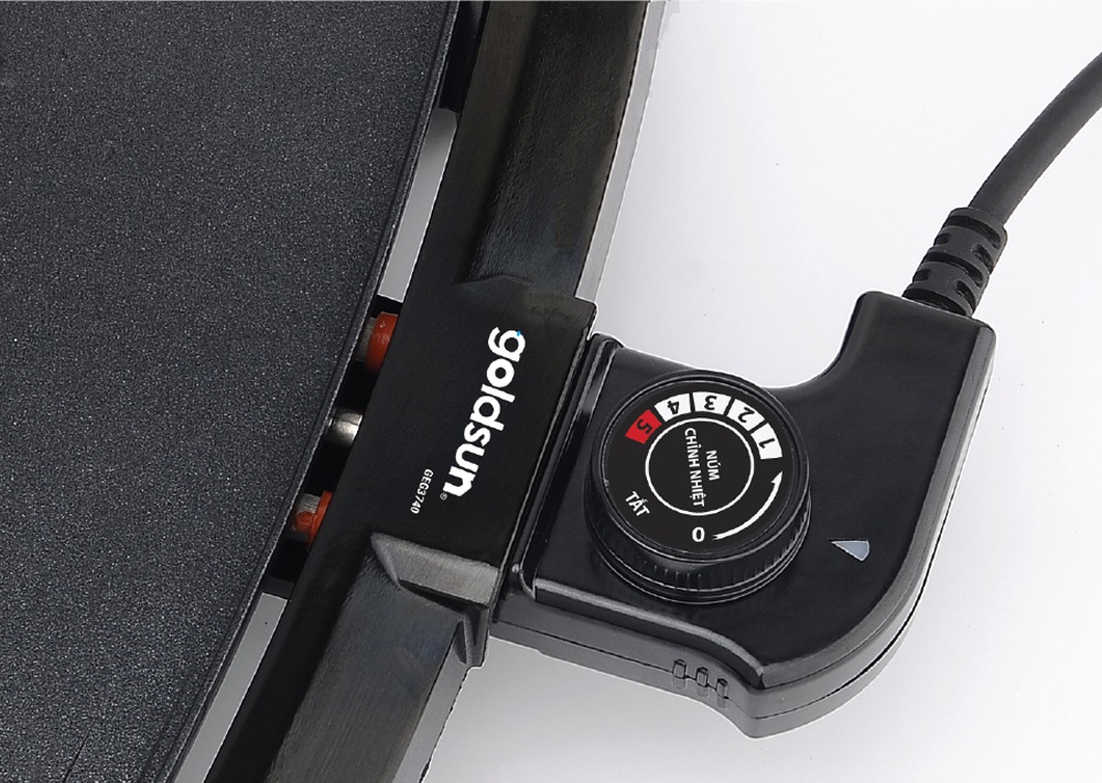 Bếp nướng điện Goldsun GEG3740 sở hữu thiết kế tiện dụng với bề mặt bếp điện phẳng và rộng dễ dàng nướng nhiều thức ăn cùng lúc. Trọng lượng bếp cực nhẹ (chỉ 1.84 kg) rất tiện cho việc sử dụng tại nhà, di chuyển và cất giữ sản phẩm. Mâm nướng làm bằng nhôm đúc dày 2.2mm phủ lớp chống dính siêu bền. Rơ le nhiệt với 5 chế độ điều chỉnh từ 115- 230℃. Tay cầm bằng nhựa PF màu đen có gân tăng cứng, chắc chắn thuận tiện cho người sử dụng. Phía dưới bếp được thiết kế 4 chân trụ bám chắc chắn bạn có thể hoàn toàn yên tâm trong quá trình sử dụng. Dây điện có thể tháo rời giúp việc bảo quản bếp gọn gàng hơn.