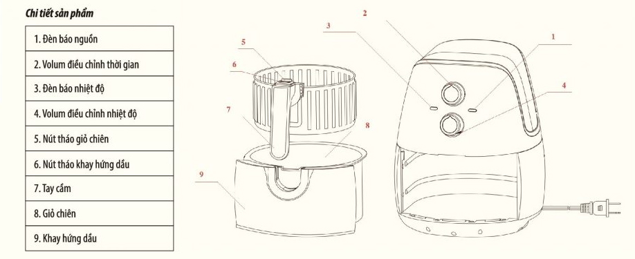- Nút tháo giỏ chiên