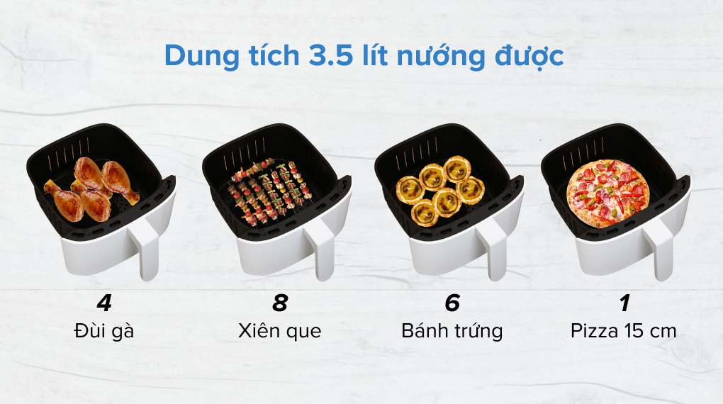 Dung tích 3.5 lít, nướng được gà nguyên con khoảng 0.8 kg, đáp ứng nhu cầu nấu nướng cho gia đình